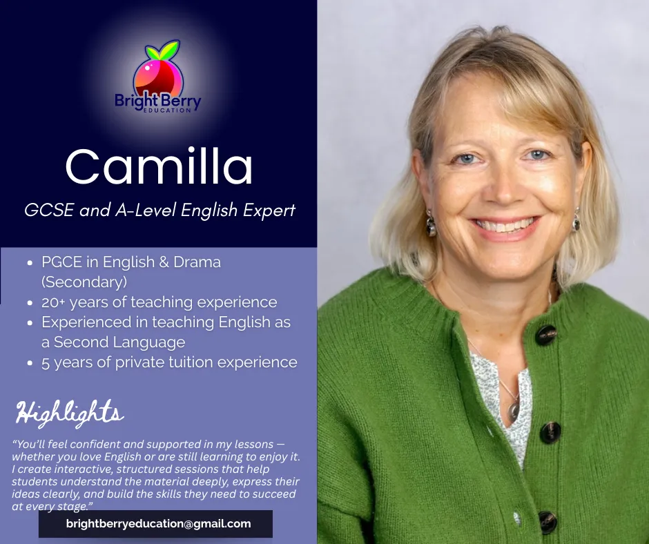 Need support with GCSE or A Level English Language or Literature ? With over 20 years of teaching experience, Camilla can help.