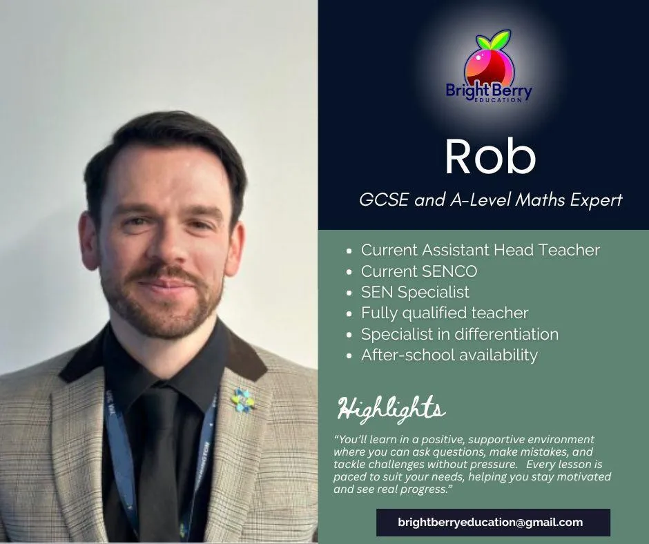 Lessons with Rob will help ease that pressure. As an assistant head, SENCO and maths teacher, Rob understands how overwhelming maths can become and has thousands of resources which can be personalised to match your needs.